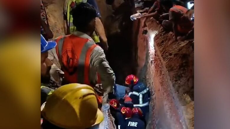 খননকাজ চলার সময় হঠাৎ করেই একটি গর্ত ধসে পড়ে। এতে সেখানে কাজ করা চার শ্রমিক মাটিচাপা পড়েন।
