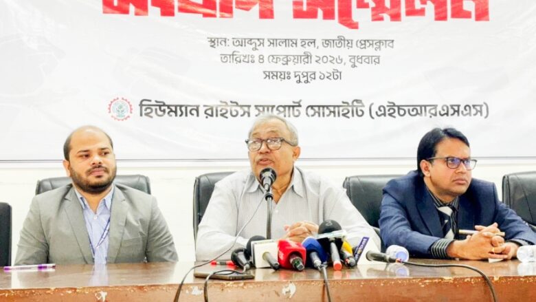 বুধবার জাতীয় প্রেসক্লাবে সংবাদ সম্মেলনে ‘ত্রয়োদশ জাতীয় সংসদ নির্বাচন পূর্ব সহিংসতার প্রতিবেদন’ প্রকাশ করে মানবাধিকার সংস্থা হিউম্যান রাইটস সাপোর্ট সোসাইটি (এইচআরএসএস)।