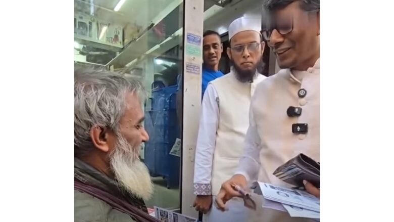 ভিডিওতে দেখা যায়, রাস্তায় পান বিক্রি করেন এমন একজনের সঙ্গে আলোচনা করছেন শাহরিয়ার কবির। কথা শেষে ওই বিক্রেতাকে এক হাজার টাকার একটি নোট দিয়ে যান।