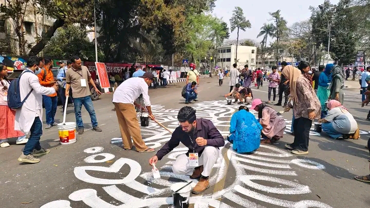 শিল্পীদের তুলির আঁচড়ে ফুটে উঠছে ভাষা আন্দোলনের চেতনা ও বর্ণমালার সৌন্দর্য।