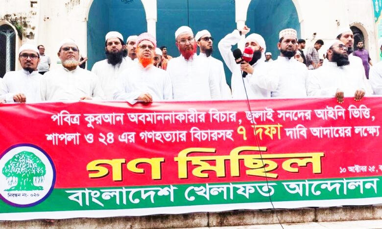 কোরআন অবমাননাকারীর বিচার, জুলাই সনদের আইনি ভিত্তিসহ ৭ দফা দাবিতে শুক্রবার (১০ অক্টোবর) জুমার নামাজের পর বায়তুল মোকাররম জাতীয় মসজিদের সামনে এক সমাবেশে তিনি এই দাবি জানান।