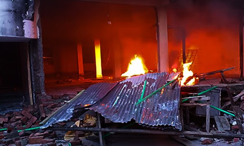 দেয়াল ভেঙে আসবাবপত্রে আগুন লাগিয়ে দেয়।