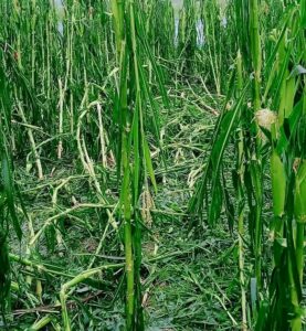 বৃষ্টির পানির চেয়ে শিলার আঘাতে মাটিতে নুয়ে পড়েছে কৃষকের সবুজ ক্ষেত। নষ্ট হয়েছে।