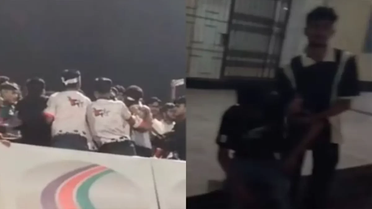 জানা গেছে, ম্যাচ চলাকালে সাকিব আল হাসানের নামে প্ল্যাকার্ড ও জয় বাংলা স্লোগানকে কেন্দ্র করে তর্কাতর্কি এবং সংঘর্ষ হয়। এই ঘটনায় পুলিশ ঘটনাস্থল থেকে ছয়জনকে আটক করেছে।