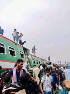 ঘটনাস্থলে উপস্থিত প্রত্যক্ষদর্শীদের দাবি, সিগন্যাল অমান্য করে ট্রেনটি অগ্রসর হওয়ার কারণেই এই ভয়াবহ দুর্ঘটনা ঘটেছে।
