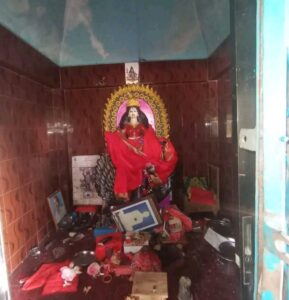 এবং মন্দিরের বাইরের বৈদ্যুতিক মিটারের তারও কেটে ফেলে দুর্বৃত্তরা। এবং পাশের শিব মন্দিরেও তাণ্ডব চালিয়ে আসবাবপত্র ভাঙচুর করে এবং ভেতরের ধর্মীয় ছবিগুলো বিলে ফেলে যায়। এতটা জঘন্য আর জঙ্গী এরা।