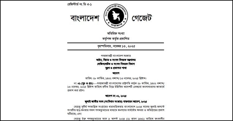 Posted inবাংলাদেশ জুলাই সনদ বাস্তবায়ন আদেশের গেজেট জারি, যা বললেন প্রফেসর ইউনূস by সোনার বাংলা 24November 13, 2025November 13, 2025