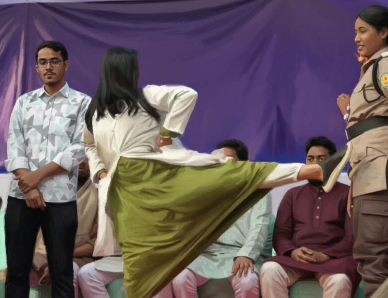কিন্তু কাজটা কী? জনগণের নিরাপত্তারক্ষী একজন মহিলা পুলিশের পেটে সরাসরি ক্যারাটে কিক কেন মারলেন তিনি?