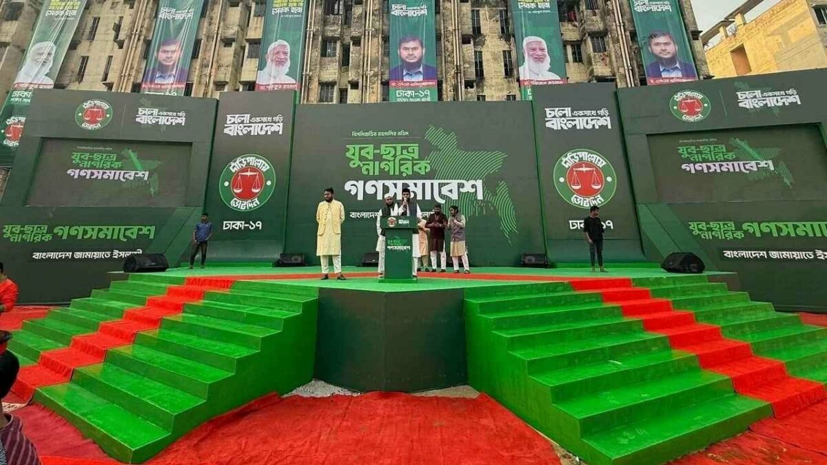 জামায়াতে ইসলামীর ঢাকা-১৭ আসনের উদ্যোগে শুক্রবার ভাষানটেক এলাকায় আয়োজিত যুব-ছাত্র ও নাগরিক সমাবেশকে ঘিরে ব্যবহৃত মঞ্চের লাল-সবুজ রং নিয়েই তীব্র সমালোচনার জন্ম দিয়েছে।