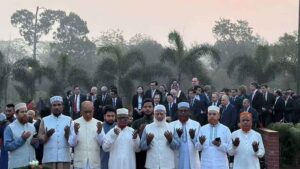 রাষ্ট্রীয় অনুষ্ঠানের অংশ হিসেবে শ্রদ্ধা নিবেদন শেষে বিরোধীদলীয় নেতা শহীদদের আত্মার মাগফিরাত কামনা করে বিশেষ মোনাজাত ও দোয়া পরিচালনা করেন।