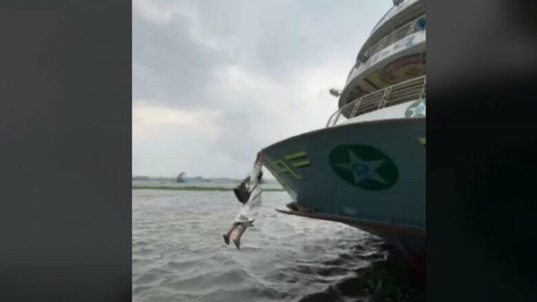 লঞ্চের সামনের অংশে বেশ কিছুক্ষণ ঝুলে ছিলেন। একপর্যায়ে না পেড়ে পড়ে যান নদীতে। এই ঘটনার একটি ভিডিও সামাজিক যোগাযোগমাধ্যমে ছড়িয়ে পড়েছে।