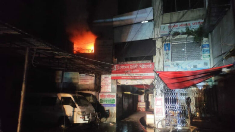 রাজধানীর তোপখানা রোডে জাতীয় প্রেস ক্লাবের উল্টোদিকে উদীচী শিল্পীগোষ্ঠীর কার্যালয়ে হামলা ও আগুন দেওয়ার ঘটনা ঘটেছে। আধা ঘণ্টা পর সেই আগুন নিয়ন্ত্রণে এনেছে ফায়ার সার্ভিস।