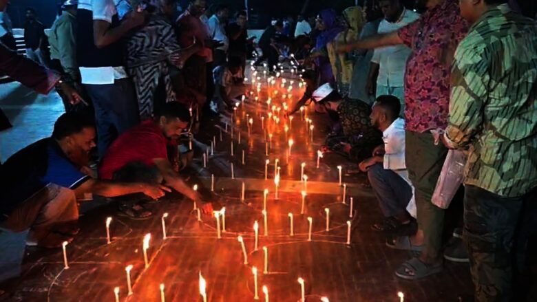 শনিবার রাত ১২টার পর কেন্দ্রীয় শহীদ মিনারে অবস্থান কর্মসূচিতে তারা মোমবাতি জ্বালিয়ে হামলার তীব্র নিন্দা জানান।