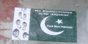 বিজয়ের মাসে পাকিস্তান ও রাজাকারদের প্রতি ঘৃণা প্রদর্শনে ঢাকা বিশ্ববিদ্যালয় কেন্দ্রীয় ছাত্র সংসদ (ডাকসু) ভবনের ফটকের সামনের মেঝেতে ও তিনটি হলের ফটকের মেঝেতে পাকিস্তানের পতাকাযুক্ত স্টিকার লাগিয়েছেন বিশ্ববিদ্যালয়ের শিক্ষার্থীরা।