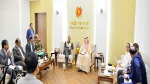 সম্প্রতি ঢাকায় নিযুক্ত সৌদি রাষ্ট্রদূত ড. আবদুল্লাহ জাফের বিন আবিয়াহ স্বরাষ্ট্র উপদেষ্টা লেফটেন্যান্ট জেনারেল (অব.) মো. জাহাঙ্গীর আলম চৌধুরীর সঙ্গে সাক্ষাৎ করে পাসপোর্ট হস্তান্তর প্রক্রিয়া দ্রুত শেষ করার আহ্বান জানান।