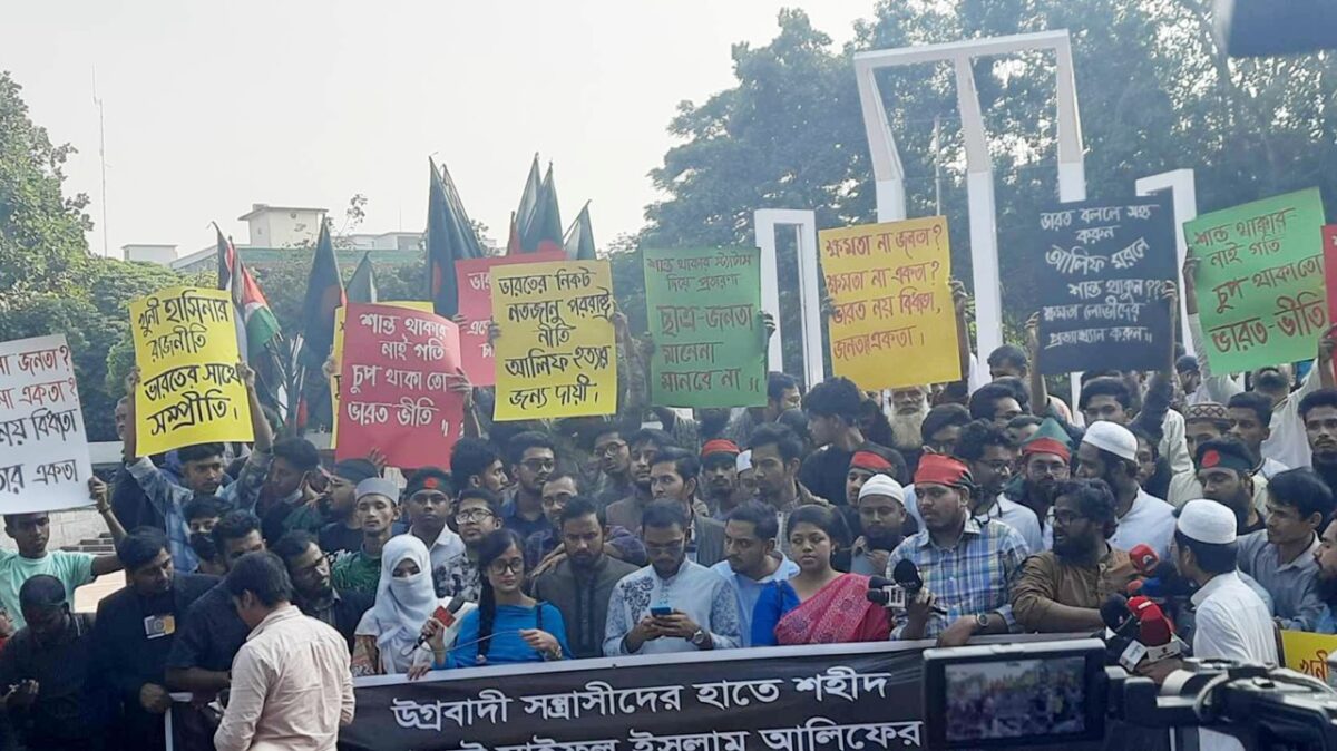 অনলাইন নিউজ পোর্টাল ঢাকাপোষ্ট ২৭ নভেম্বর ‘ ২০২৪ এর একটি সংবাদে দেখা গেছে- ঢাকায় কেন্দ্রীয় শহীদ মিনারে অনুষ্ঠিত একটি সমাবেশে ভারত বিরোধী প্ল্যাকার্ড আর শ্লোগান ছিল তীব্রভাবে।