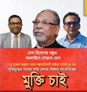 ৪) মুক্তিযুদ্ধের ইতিহাস বিকৃত করা, ইতিহাস মুছে ফেলা, মুক্তিযুদ্ধের বিরুদ্ধে ঘৃণা, বিদ্বেষ ছড়ানো, বীর মুক্তিযোদ্ধাদের হেয় করার সঙ্গে সংযুক্ত সব ব্যক্তির বিরুদ্ধে অবিলম্বে রাষ্ট্রদ্রোহিতার অভিযোগে মামলা দায়ের করে গ্রেপ্তার এবং বিচার করতে হবে।