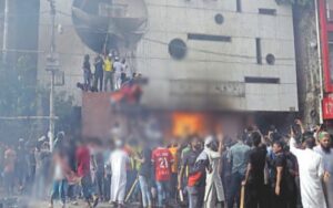 এরই মধ্যে আমরা দেখলাম আবারো সেই মব সন্ত্রাস। এবার সরাসরি ব্যানার নিয়েই সেই সন্ত্রাস চালালো একাত্তরের কুখ্যাত রাজাকারের দল জামায়াতে ইসলামীর ছাত্রসংগঠন ইসলামী ছাত্র শিবিরের ক্যাডাররা। এর আগে ভাংচুর করা পুলিশ পাহাড়াতেই আওয়ামী লীগের সেই ভাঙাচোরা অফিসটাকে ভাংলো আর আগুন দিয়ে পুড়িয়ে দিলো শিবির ক্যাডাররা।