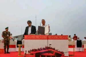 একাত্তরে ৩০ লাখ শহীদের রক্ত আর দুই লাখ মা-বোনের সম্ভ্রমের বিনিময়ে অর্জিত স্বাধীনতা ও বাংলাদেশের সংবিধানকে নিশ্চিহ্ন করার ষড়যন্ত্র পুরোপুরি পাকা করতে মরিয়া হয়ে উঠেছে ইউনুস সরকার।