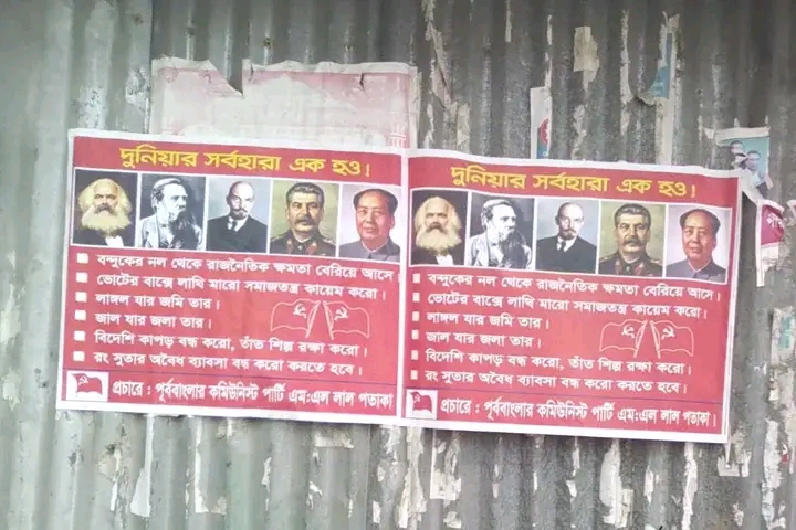 নিষিদ্ধ ঘোষিত সংগঠন পূর্ববাংলার কমিউনিস্ট পার্টির (এমএল-লাল পতাকা) দেয়াল লিখন এবং পোস্টার দেখা গিয়েছে।
