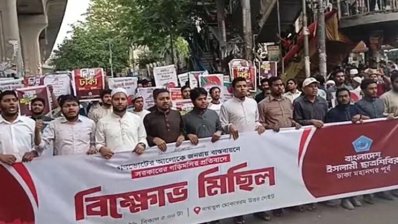 বুধবার বিকাল ৫ টায় ছাত্রশিবির, ঢাকা মহানগর পূর্ব শাখার উদ্যোগে বায়তুল মোকাররম জাতীয় মসজিদের উত্তর গেট থেকে এই বিক্ষোভ মিছিল বের হয়।